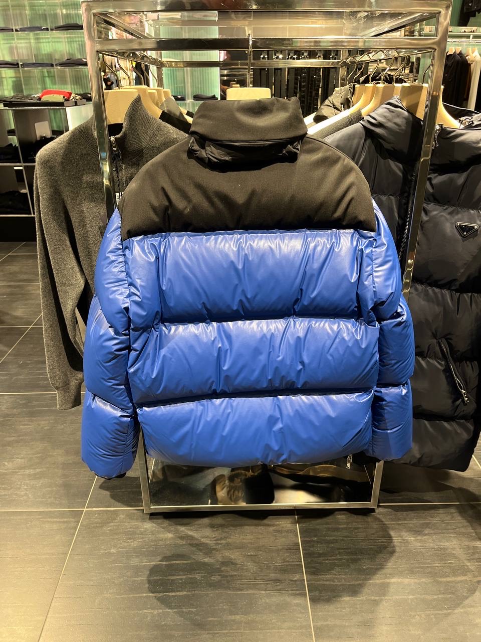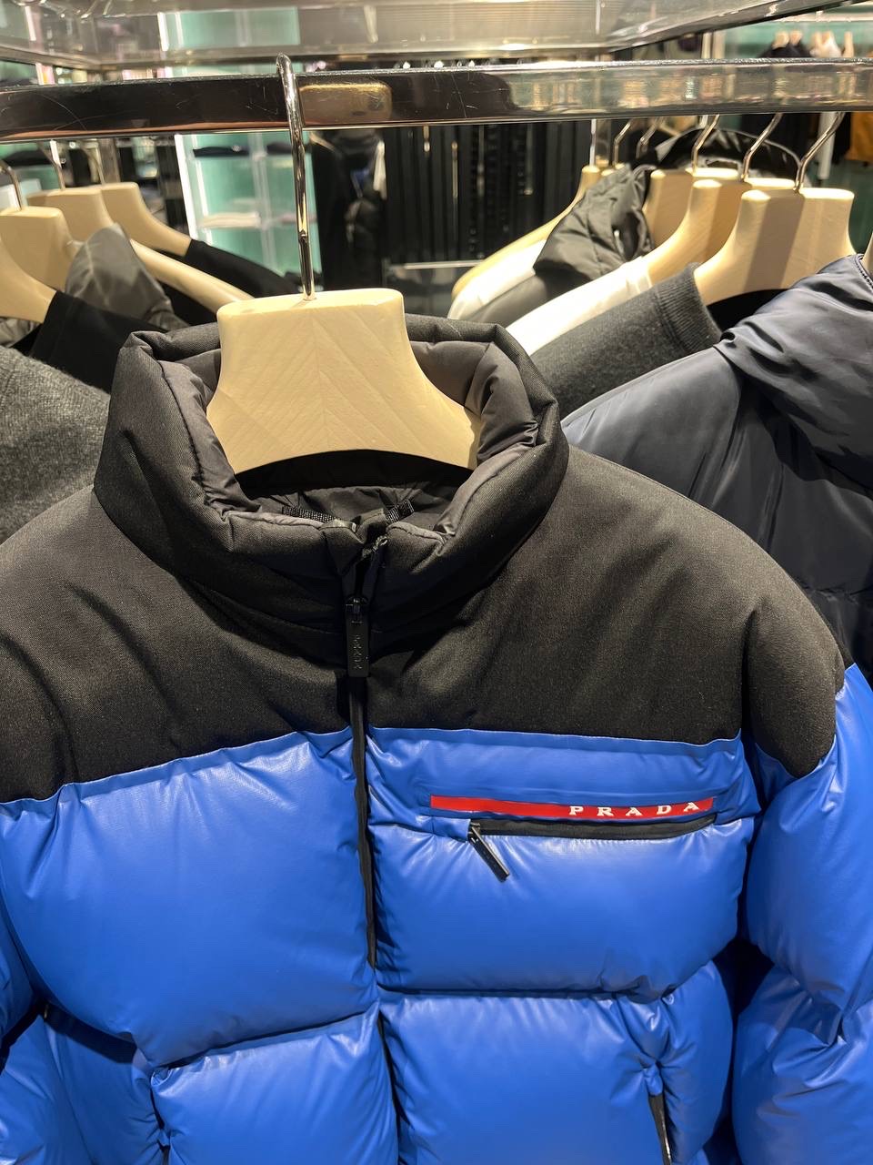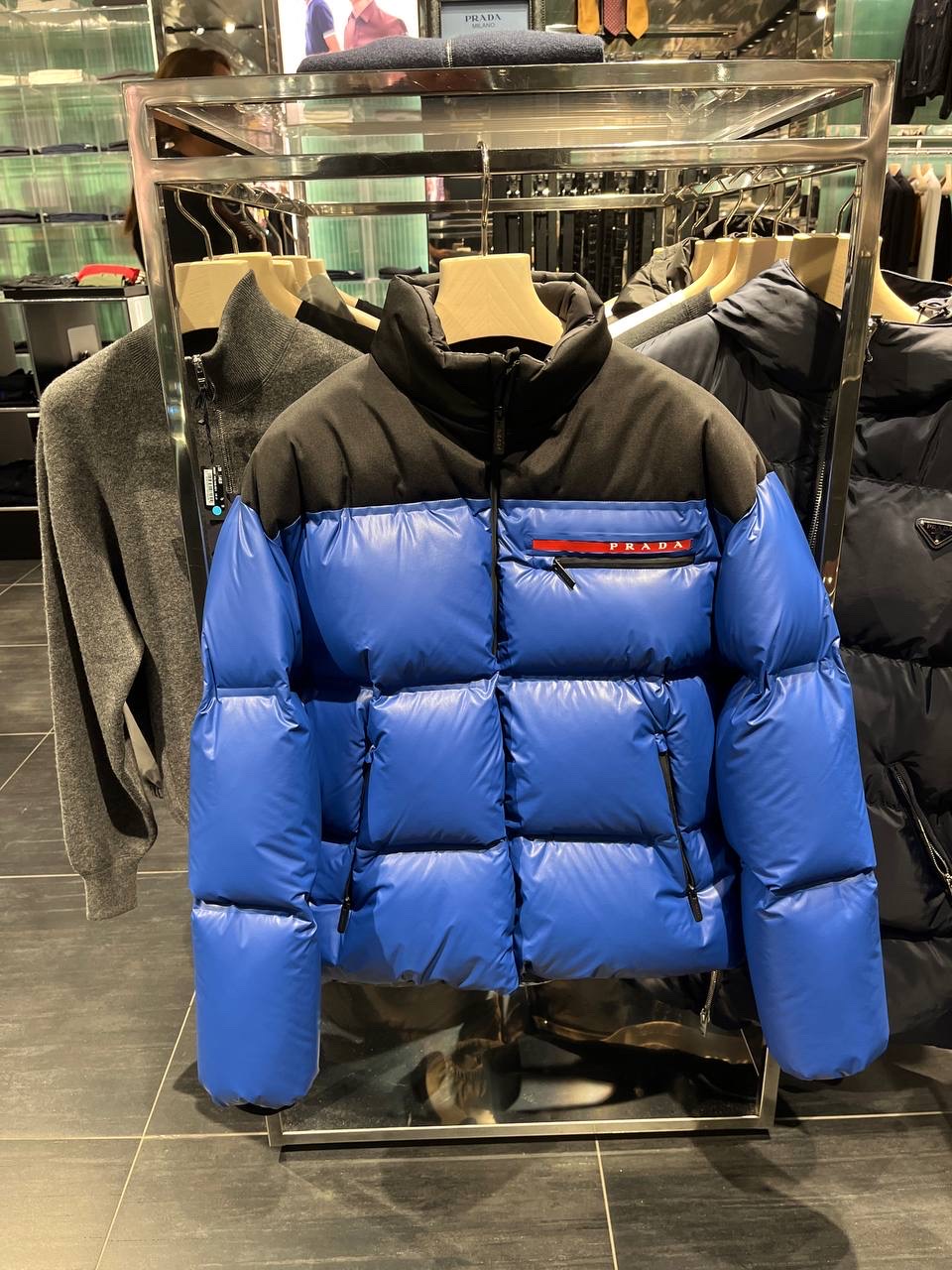 Discover the luxurious comfort of the PRADA men's down jacket, featuring a vibrant blue color that stands out. This stylish puffer jacket combines modern design with exceptional insulation, making it a perfect choice for cold weather outings.