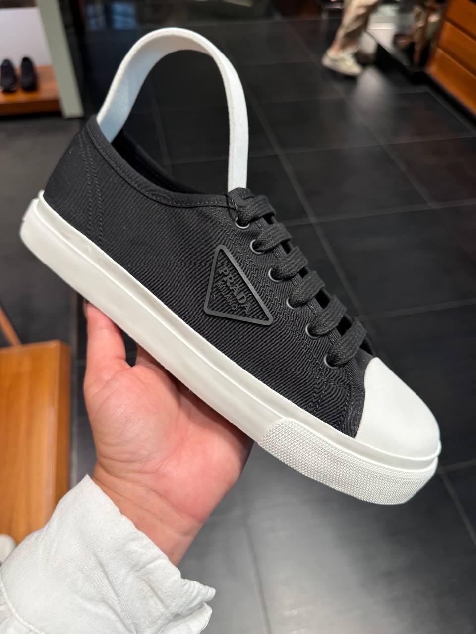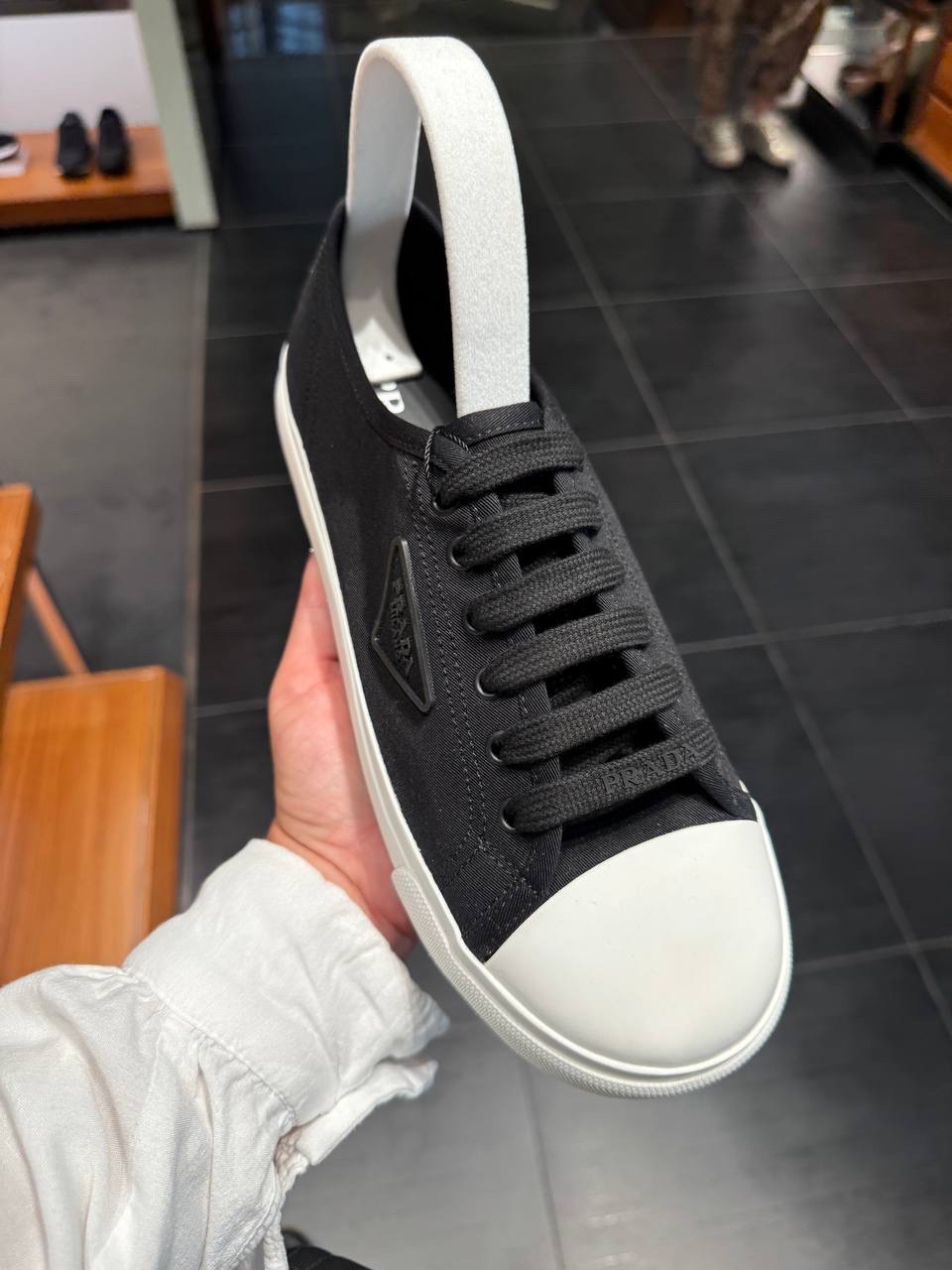 Elevate your footwear collection with these Prada men's sneakers featuring a sleek black design. The innovative style combines comfort with luxury, showcasing Prada's signature craftsmanship and modern aesthetics for a contemporary look.