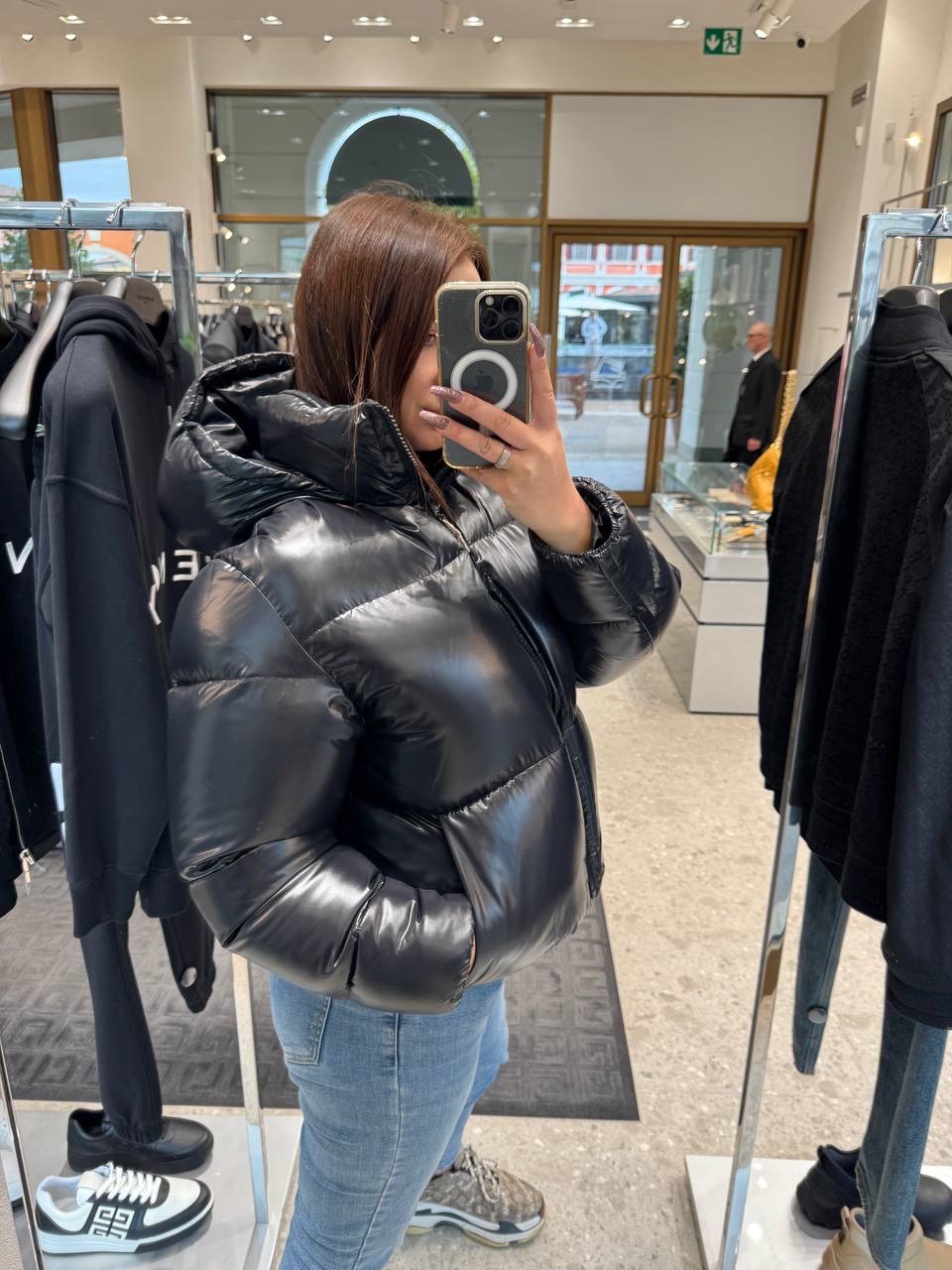 Experience the luxury of GIVENCHY with this stylish women's down jacket. This piece features a contemporary design that combines comfort and elegance, perfect for cool weather outings while making a bold fashion statement.