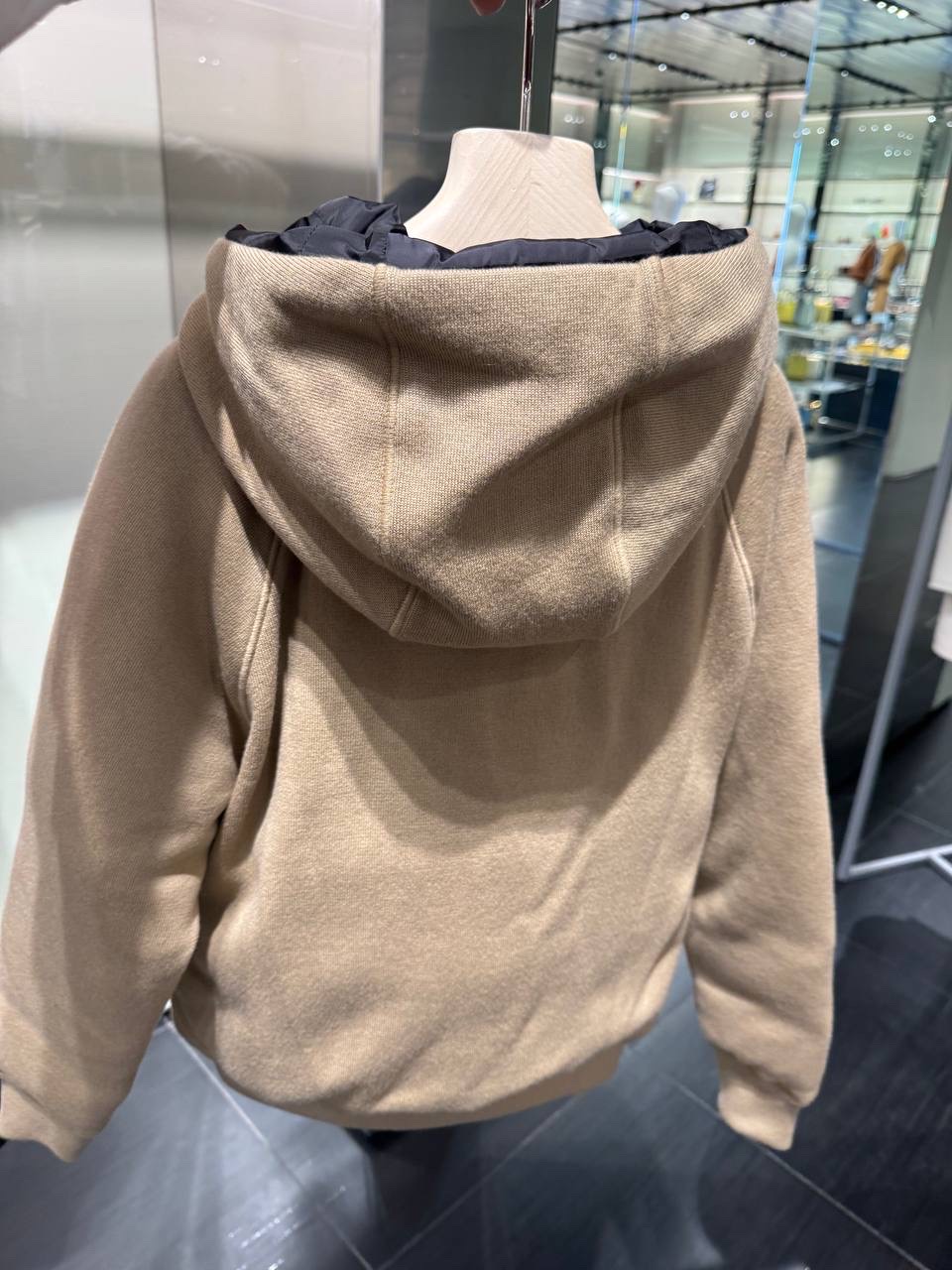 This stylish beige jacket by Prada embodies luxury and contemporary fashion. Designed for women who appreciate sophistication, it features a unique logo detail and modern silhouette that makes it perfect for any occasion.