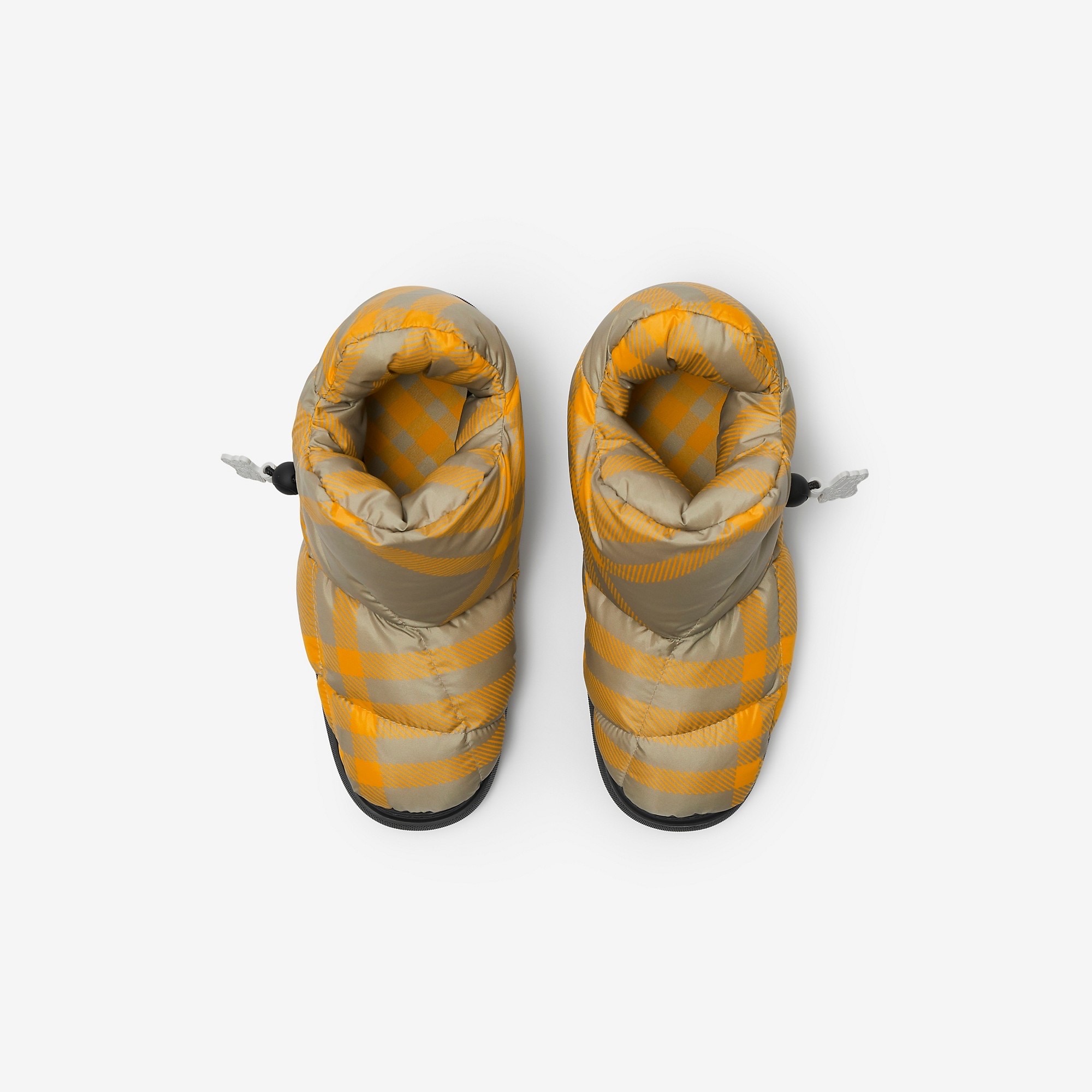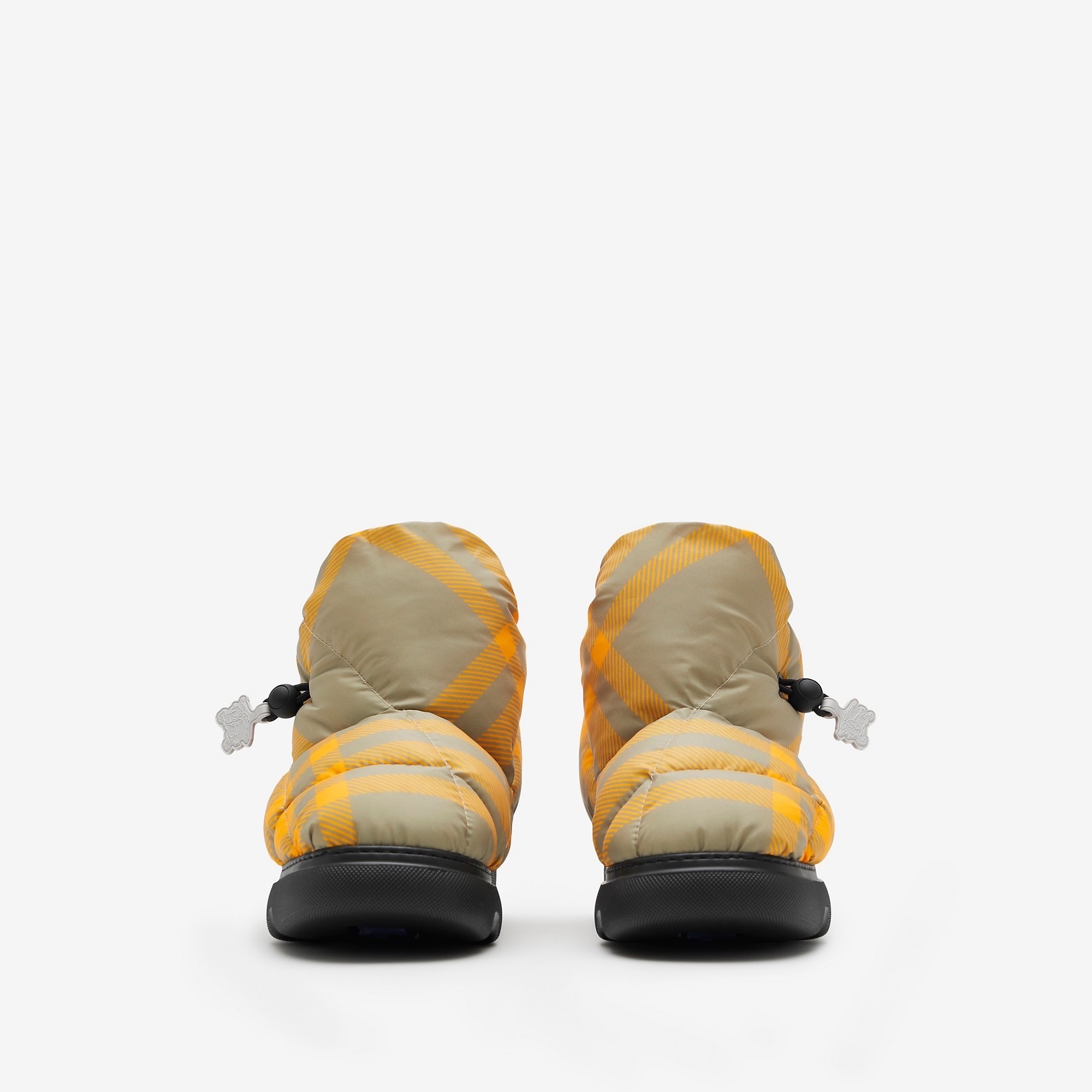 Step into style with the Burberry Puff Boot in a vibrant orange pattern. Designed for the modern woman, these boots feature a distinctive puffy silhouette that combines comfort and fashion effortlessly.