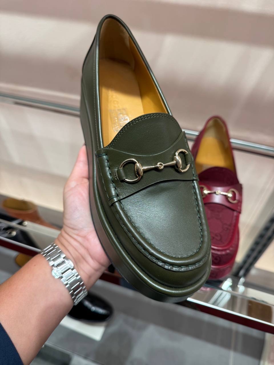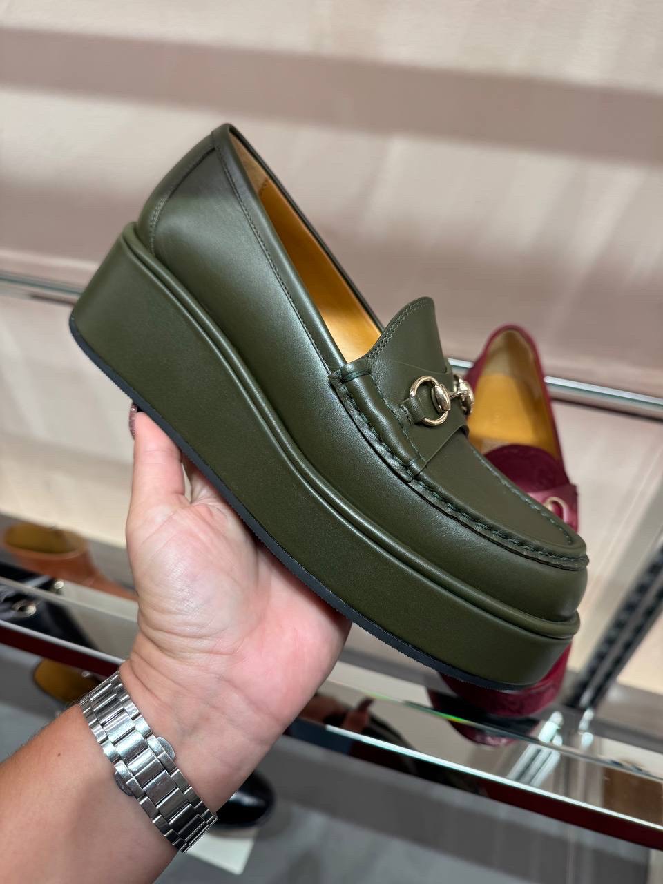 Step into luxury with the Gucci platform loafers designed for women. Featuring an elegant silhouette and signature detailing, these shoes combine style and comfort, making them a perfect addition to any chic wardrobe.