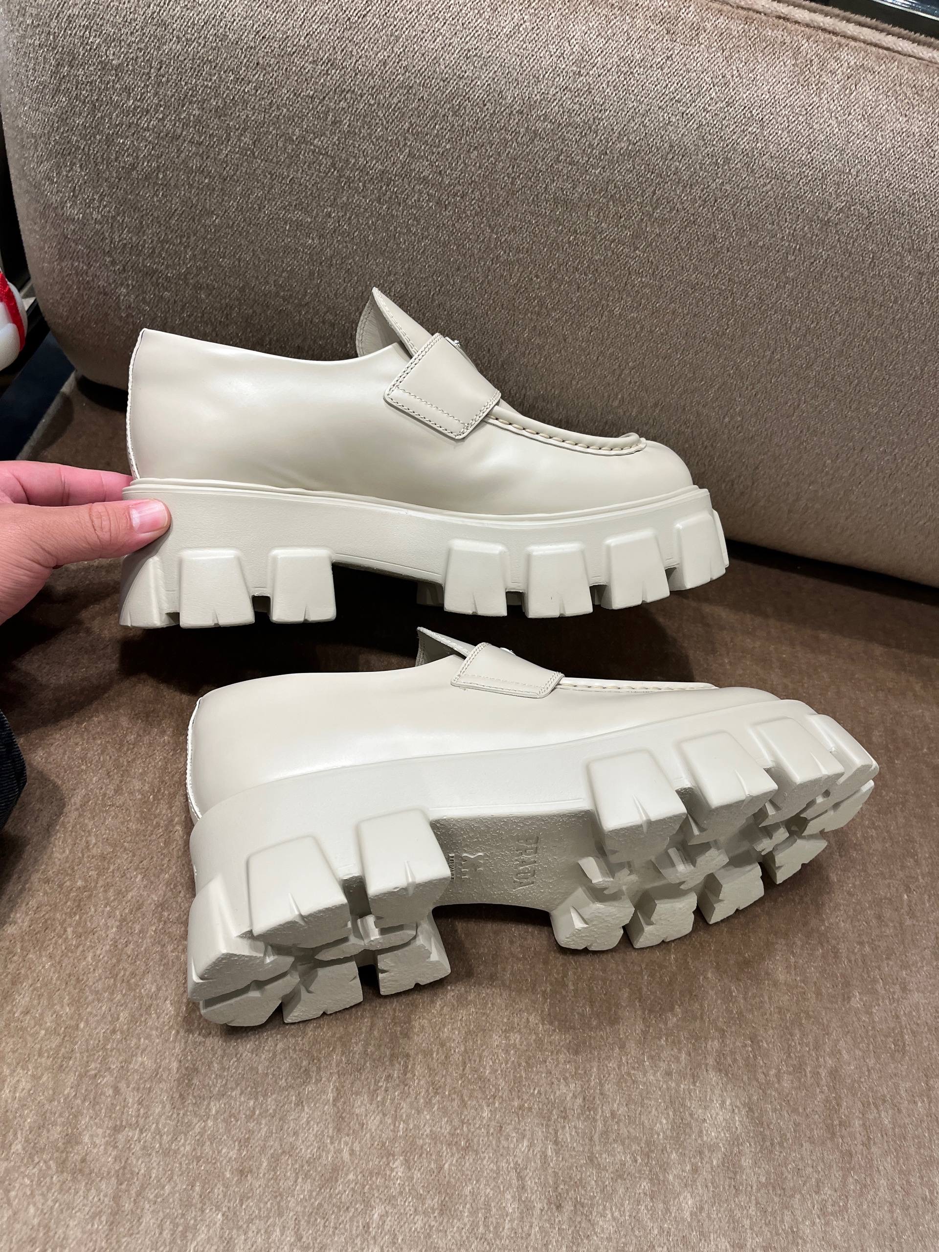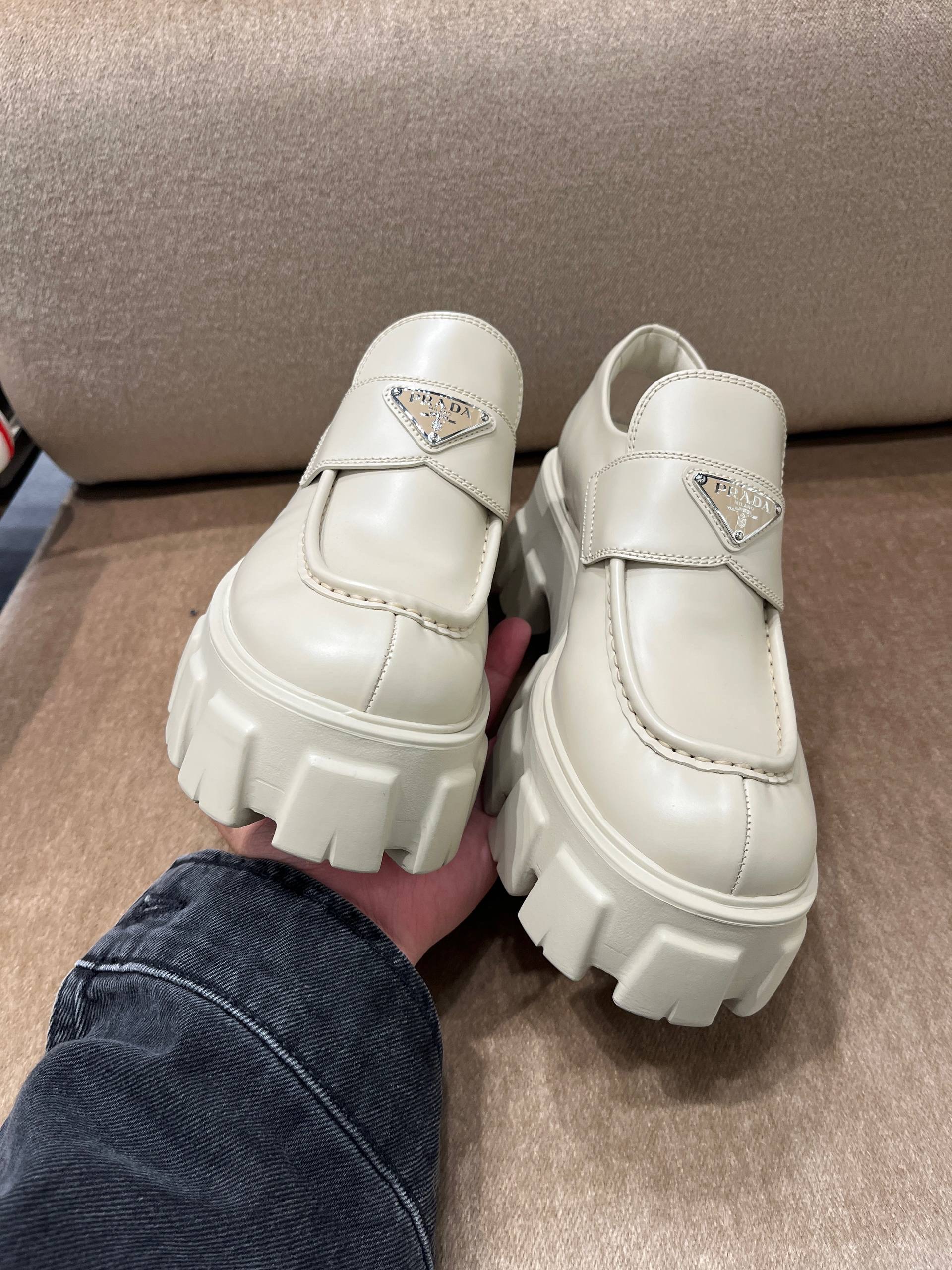 Experience the unique blend of style and comfort with PRADA's chunky loafers for women. Designed with a modern flair, these white shoes elevate any outfit while showcasing the brand's commitment to luxury and innovative fashion.