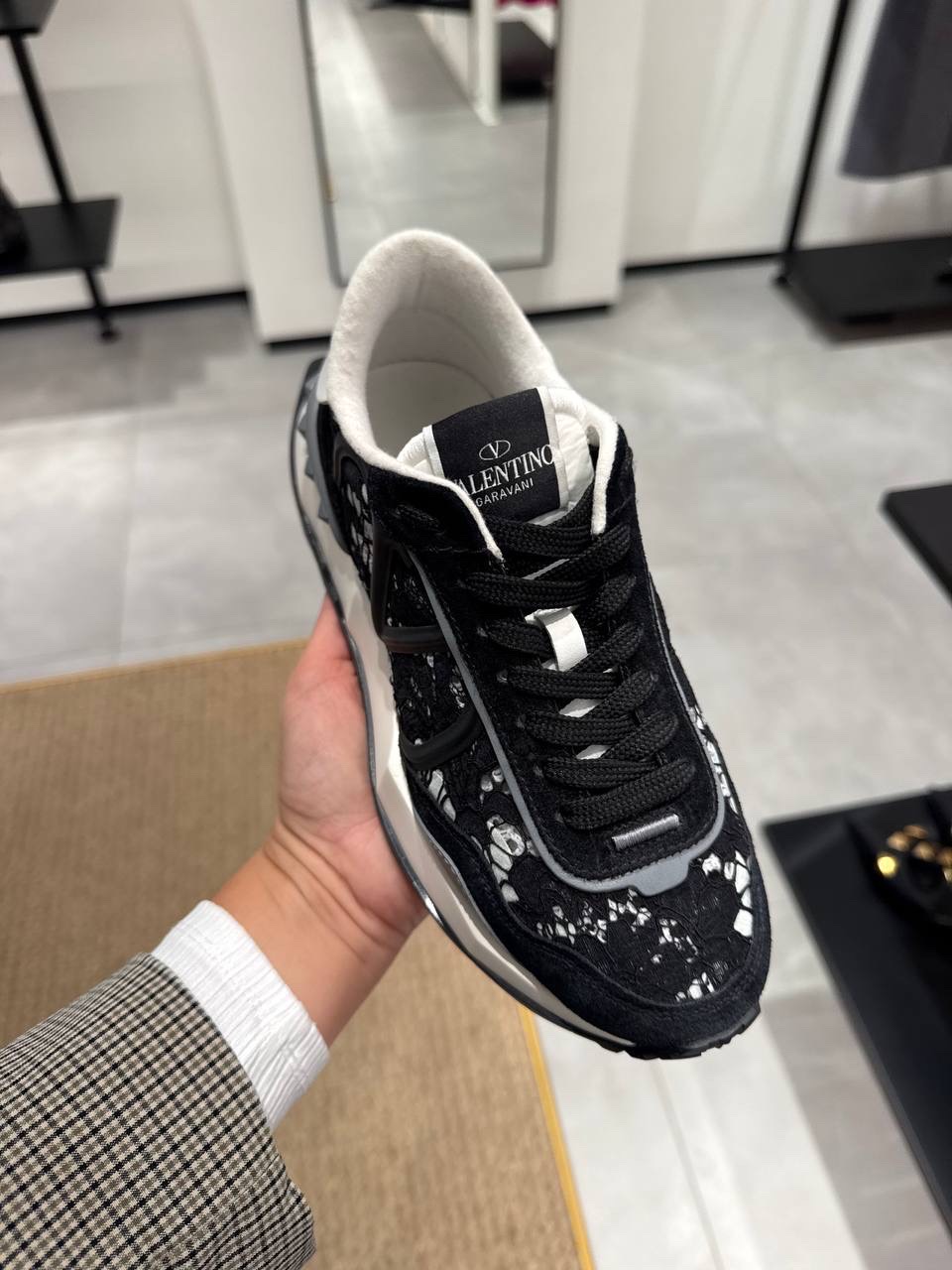 Elevate your style with Valentino Garavani's women's sneakers featuring a striking black floral design. These shoes blend luxury with comfort, embodying the brand's iconic aesthetic and innovative craftsmanship. Perfect for adding a chic touch to any outfit.